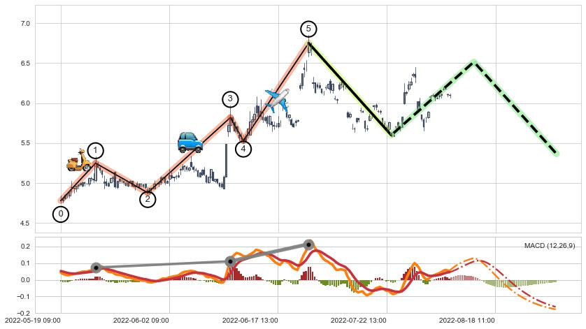 ➢ 波浪理论:猜想b点持续蓄力下跌至c点 → 下跌 → 风险信号 → 小趋势跟踪