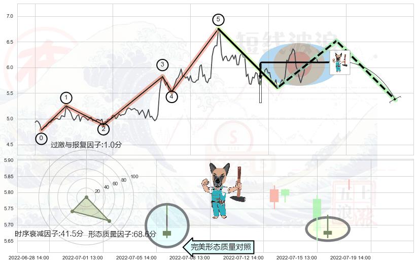 从2022-07-12 14:00至2022-07-22 13:00,共包含16个小时,阶段股价上涨0.22%,阶段股价变动位移路程比: 1 : 88