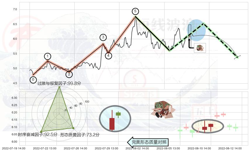从2022-07-22 13:00至2022-08-12 14:00,共包含30个小时,阶段股价上涨7.68%,阶段股价变动位移路程比: 1 : 5