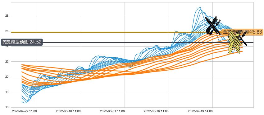 ➢ 40小时均线于(07-18 14:00: 26.82)形成【死叉】基于【死叉历史模型】预测死叉后最低波谷价格: 24.99, 死叉后最低价格22.90,已经下跌超出预测最低波谷价格, 预期反弹