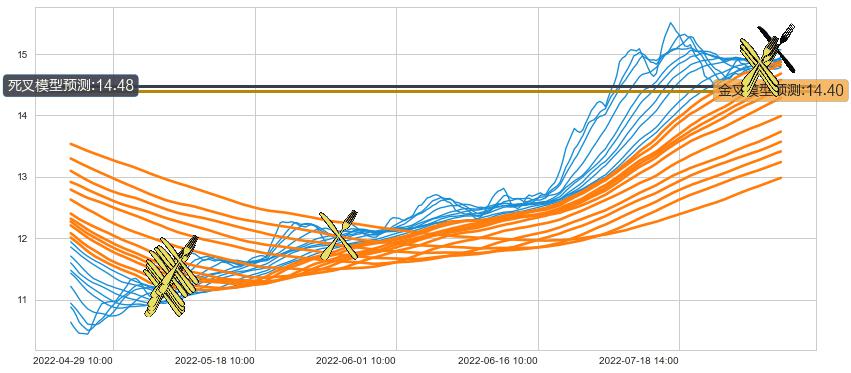 📈 多条均线基于【金叉历史模型】预测最高波峰价格的平均值: 14.40