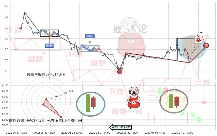 ➢ 低点影线(06-23:13: 5.89 )→再次回踩→第一根k线高点(06-17:14: 5.91 )