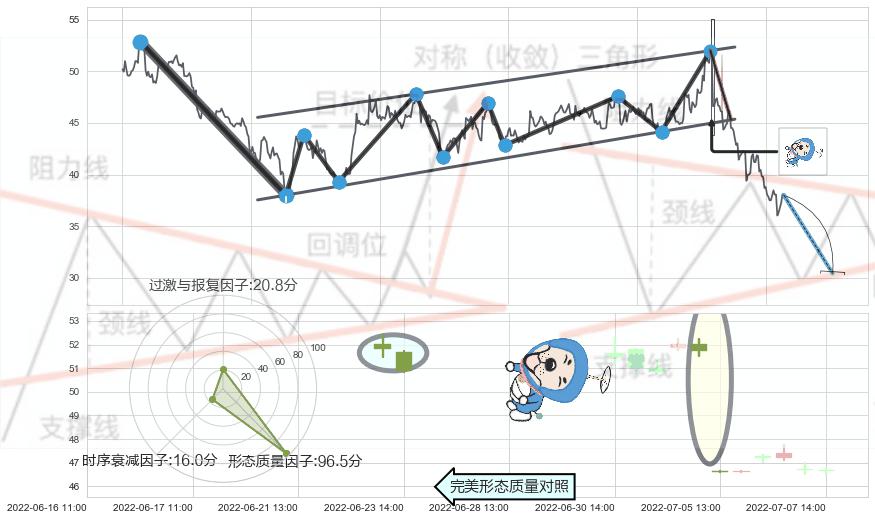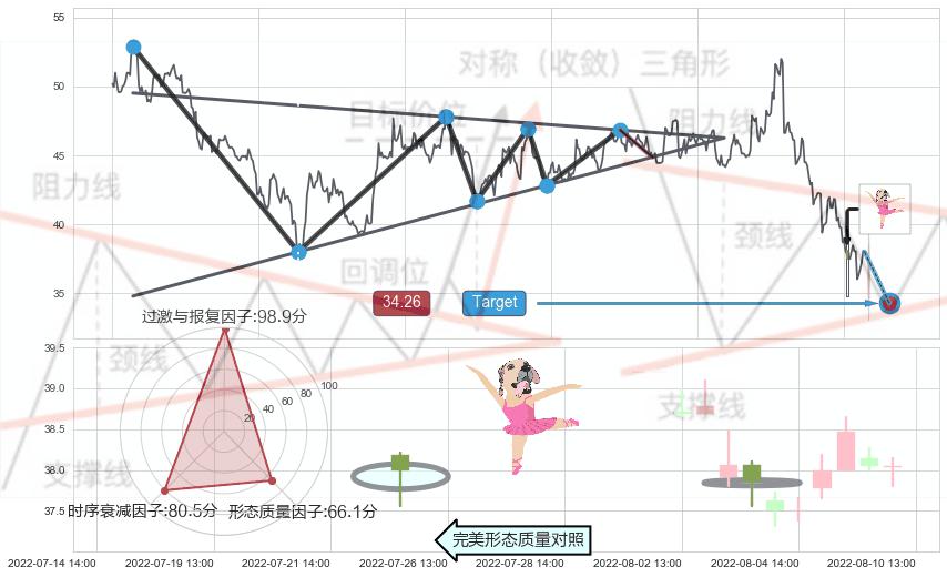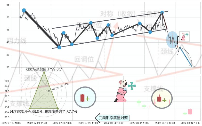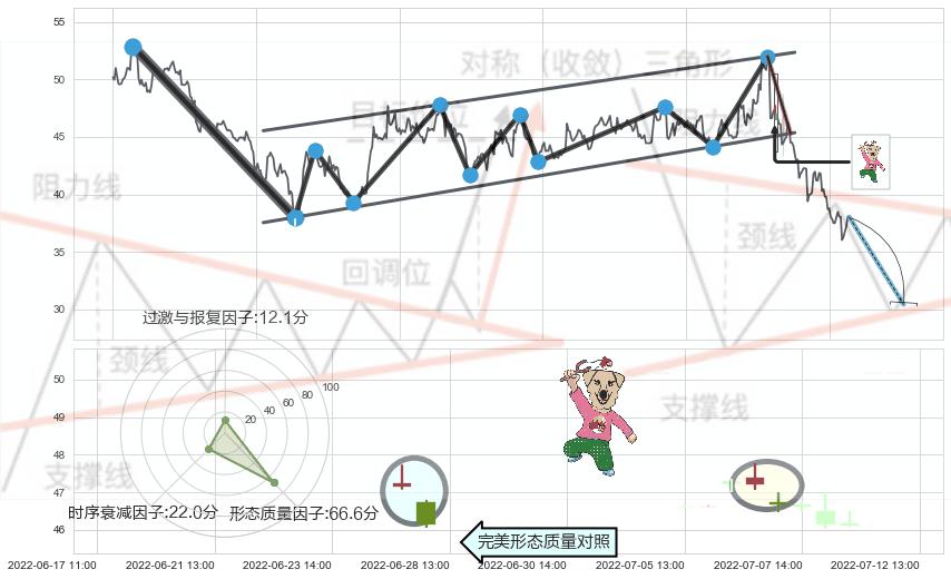 ➢ 下降【对称】三角形整理综合量化分数: 43.73 【偏空】