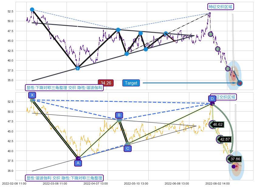 ➢ 下降对称三角整理与谐波伽利信号事件周期长度级别相同,同周期信号事件