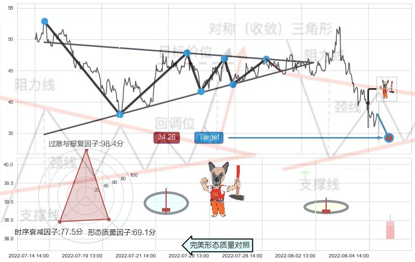 ➢ 上涨螺旋桨形态 🔜 下降对称三角整理临近target支撑拐点上涨 综合量化分数:57.37 【偏多】