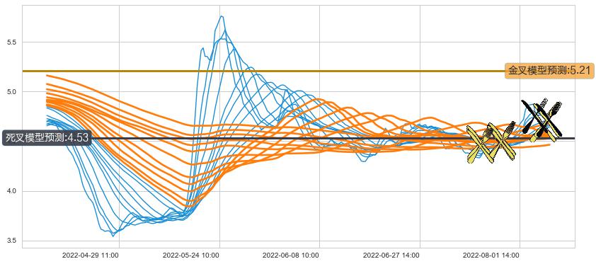 ➢ 13小时均线于(08-05 14:00: 4.75)形成【死叉】基于【死叉历史模型】预测死叉后最低波谷价格: 4.59, 死叉后最低价格4.62,尚未达到预测最低波谷价格, 预期继续下跌