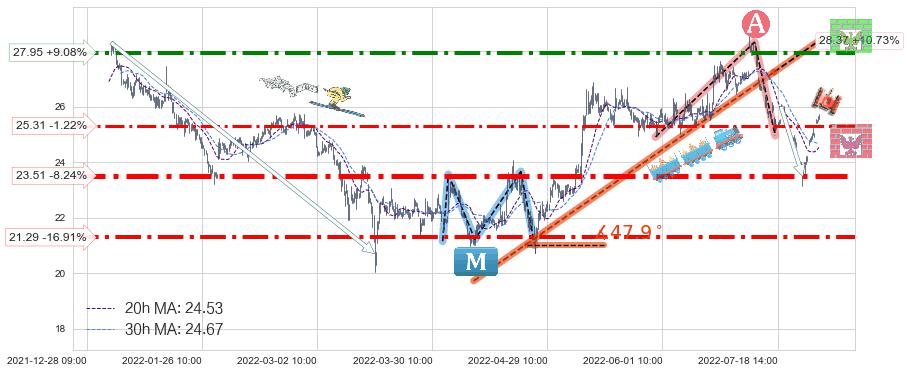 ♘ 阻力价格位27.95,可信任强度80.89%,距离最后交易2022-08-12 14:00形成的收盘价格25.62相差 +9.08%