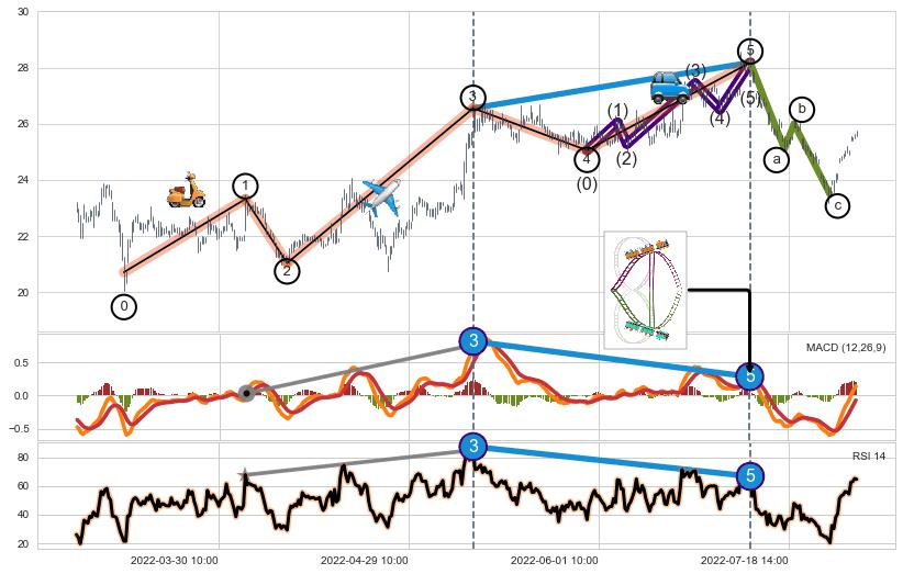 ➢ 波浪理论:猜想达到c点后小回调终止反转上涨 → 上涨 → 【拐点】临近 → 阶段均值回复结束后继续大周期趋势跟踪