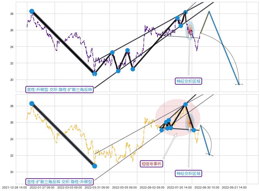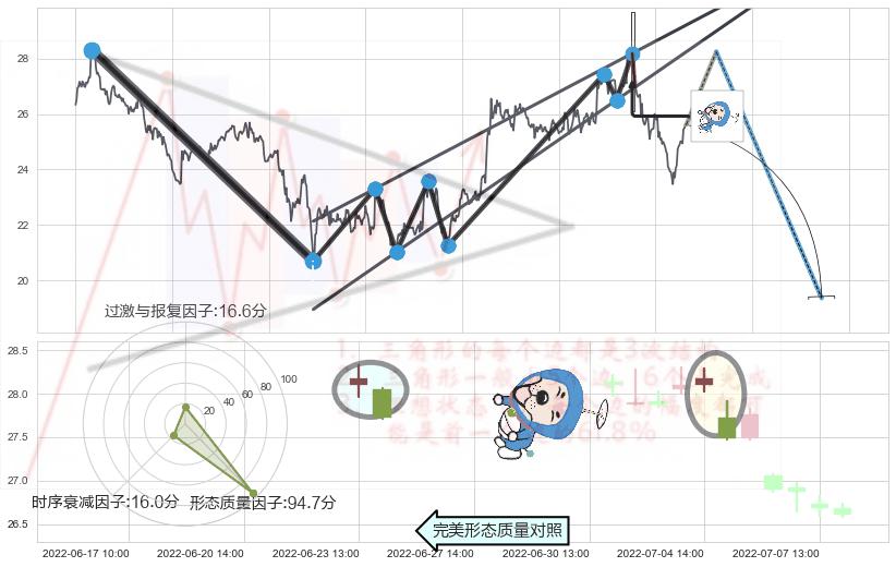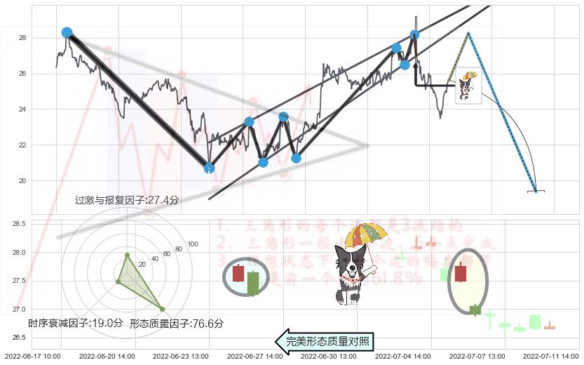 ➢ 扩散三角反转支撑破位转换阻力下跌 🔜 升楔型支撑破位转换阻力下跌 综合量化分数:34.68 【强烈看空】