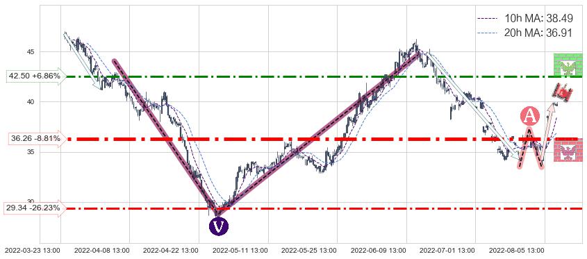 ♘ 阻力价格位42.50,可信任强度58.20%,距离最后交易2022-08-12 14:00形成的收盘价格39.77相差 +6.86%