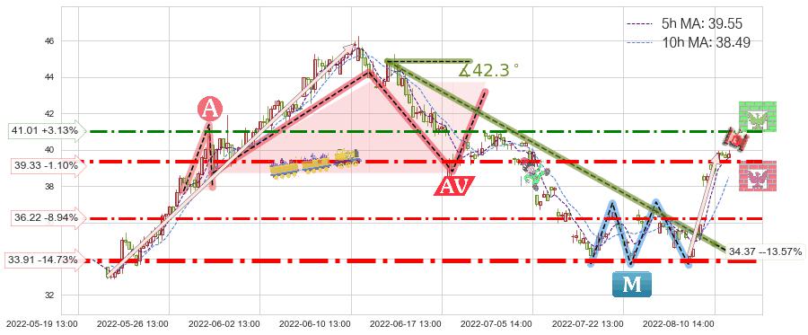♘ 阻力价格位41.01,可信任强度55.11%,距离最后交易2022-08-12 14:00形成的收盘价格39.77相差 +3.13%