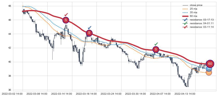 📝 多条均线形成死叉后走势最低价格达到: 30.46