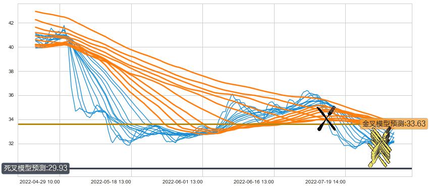➣ 45小时均线于(08-05 13:00: 32.31)形成【金叉】基于【金叉历史模型】预测金叉后最高波峰价格: 34.31, 金叉后最高价格33.41,尚未达到预测最高波峰价格, 预期继续上涨