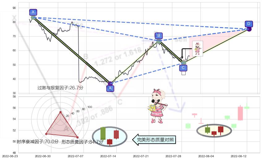 ➣ BC回撤位置在AB的51.9%,符合形态要求