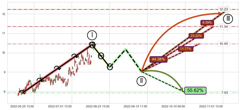 ♘ 支撑价格位8.83,可信任强度91.28%,距离最后交易2022-08-12 14:00形成的收盘价格10.14相差 -12.91%