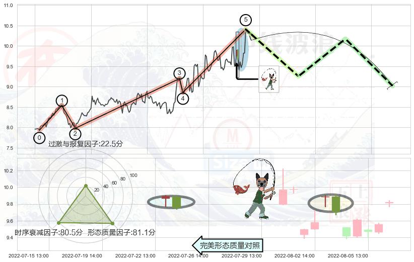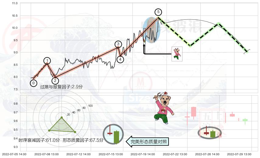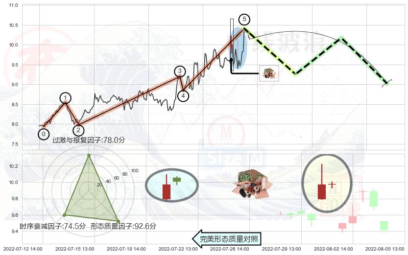 ➣ 顶部尽头线(下山虎) + 波浪理论上涨浪:浪5回调拐点信号叠加后【目标达成率】中等,【看空】信号叠加【存续影响中等】
