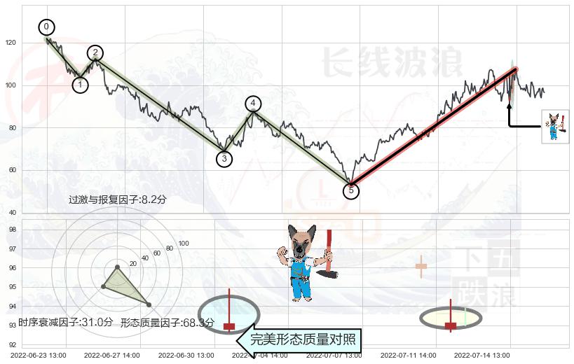 ➢ 🕰 价格走势在2022-07-15 14:00:00至2022-07-19 14:00:00期间形成高档五阴线,残存影响值:-3.63
