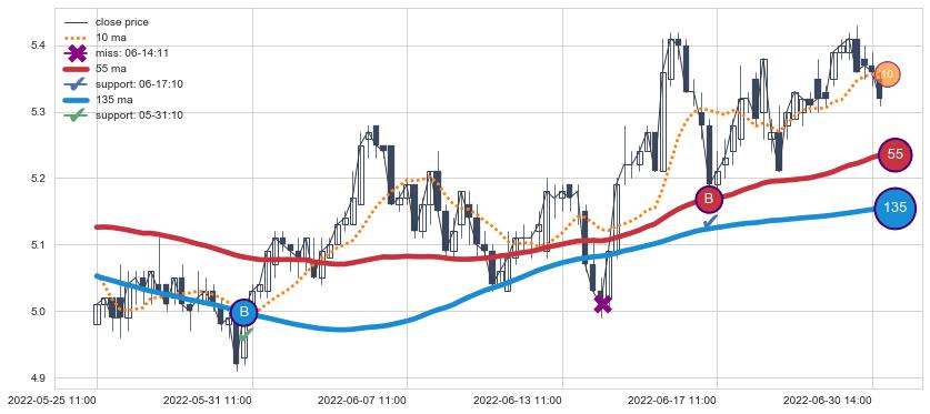 ➣ 135小时均线于(08-04 14:00: 5.20)形成【金叉】基于【金叉历史模型】预测金叉后最高波峰价格: 5.65, 金叉后最高价格5.43,尚未达到预测最高波峰价格, 预期继续上涨