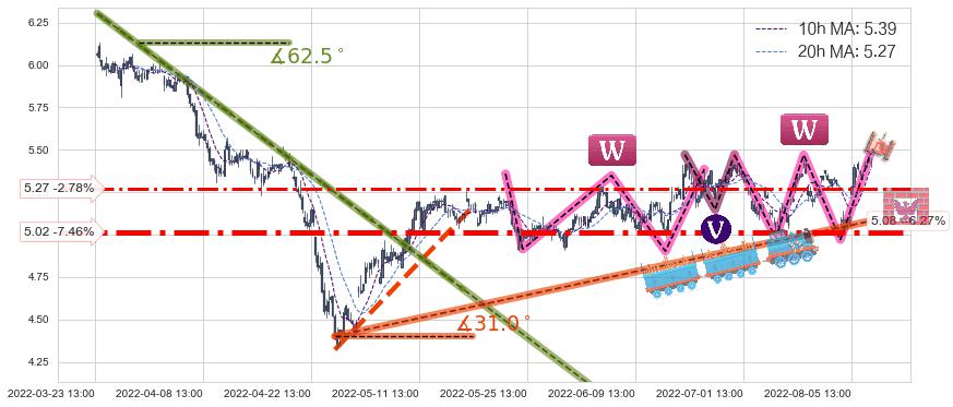 ♞ 10小时均线:5.39,20小时均线:5.27→ 快线>慢线