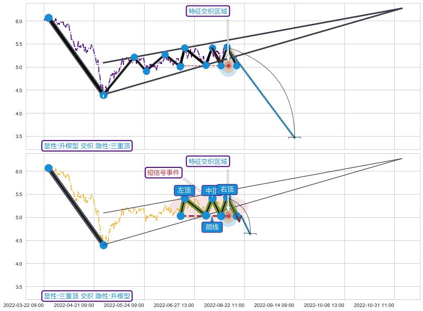 ➢ 三重顶属【短级别信号事件】升楔型属【长级别信号事件】长短周期组合信号事件, 短长事件长度比27.91%