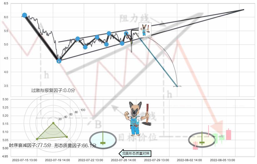 ➢ 空方炮 🔜 升楔型支撑破位转换阻力下跌 综合量化分数:45.47 【偏空】