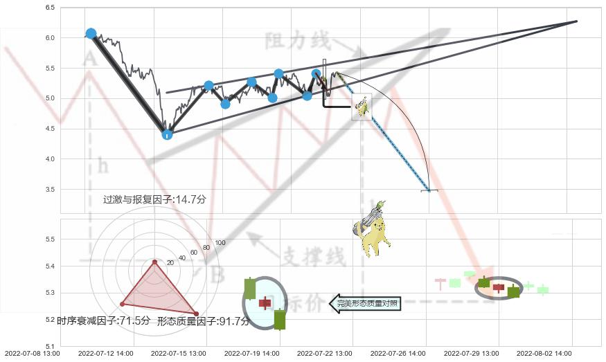 ➢ 扩散三角反转临近支撑猜想转换阻力下跌 🔜 升楔型支撑破位转换阻力下跌 综合量化分数:37.66 【偏空】