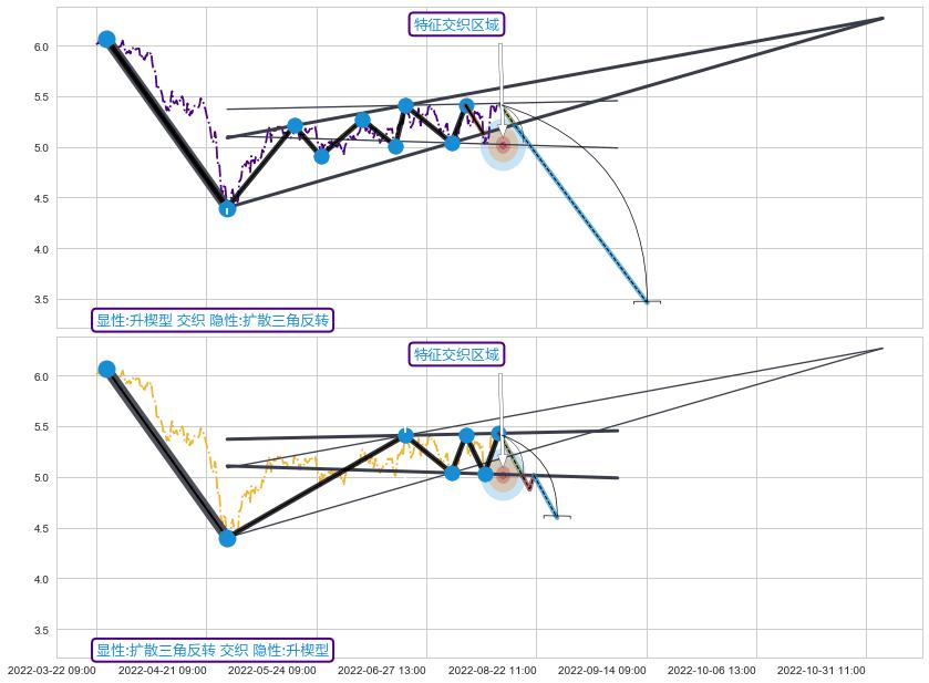 ➣ 扩散三角反转:猜想临近关键支撑位突破点 → 临近拐点下跌 → 风险信号 → 大趋势均值回复