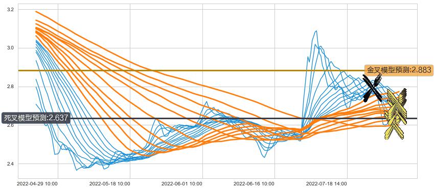 ➣ 60小时均线于(07-29 13:00: 2.780)形成【死叉】基于【死叉历史模型】预测死叉后最低波谷价格: 2.632, 死叉后最低价格2.550,已经下跌超出预测最低波谷价格, 预期反弹