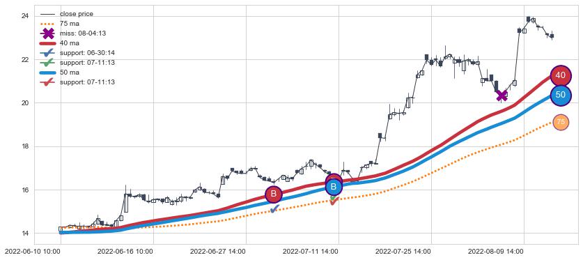 ➣ 75小时均线于(06-07 09:00: 14.17)形成【金叉】基于【金叉历史模型】预测金叉后最高波峰价格: 15.48, 金叉后最高价格23.89,已经上涨超出预测最高波峰价格, 预期回调