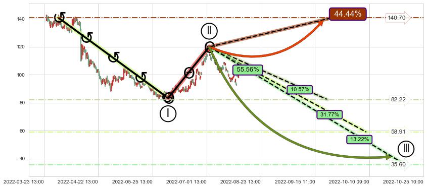 ➢ 循环浪继续向下【最低】位置(10-25:10, 35.60),匹配聚类样本比例23.79%, 可能性概率13.22%