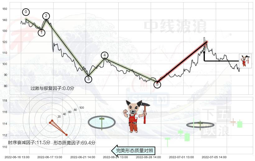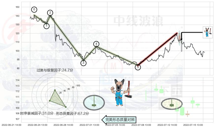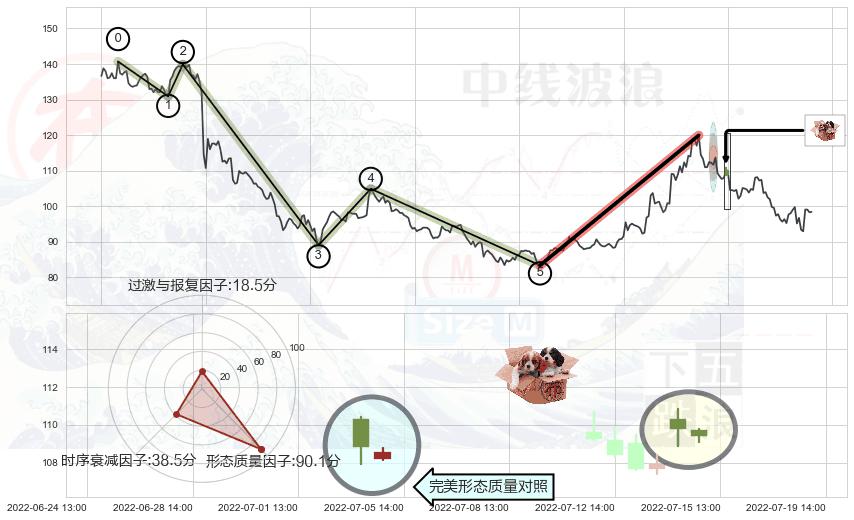 ➢ 🕰 价格走势在2022-07-06 14:00:00至2022-07-08 14:00:00期间形成高档五阴线,残存影响值:-1.36