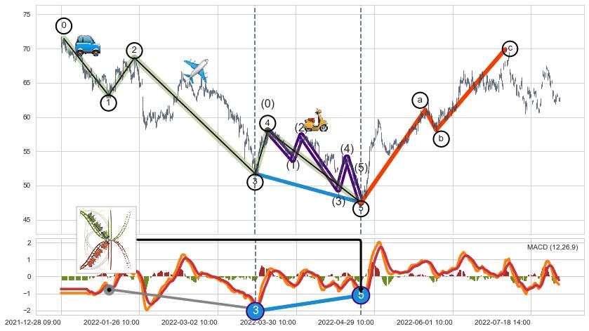 ➣ 波浪理论:猜想达到c点后小反弹终止反转下跌 → 下跌 → 【拐点】临近 → 阶段均值回复结束后继续大周期趋势跟踪