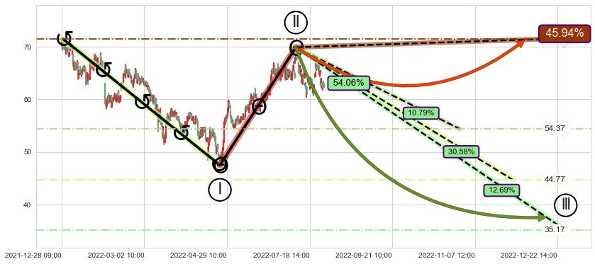 ➣ 大趋势循环浪继续向下概率54.06%