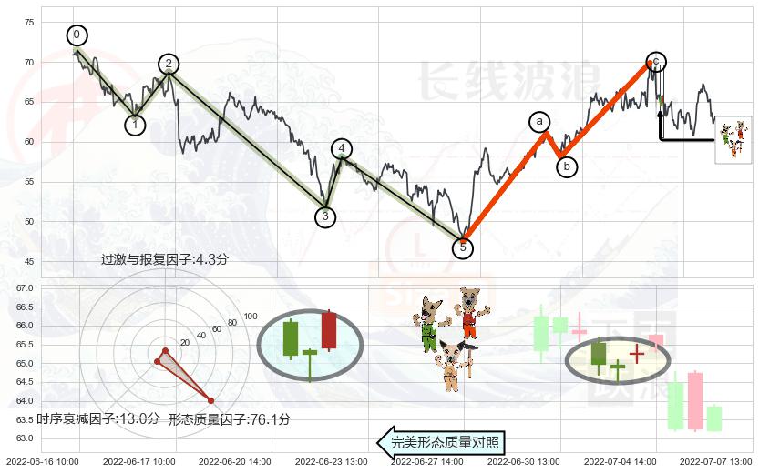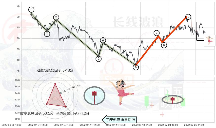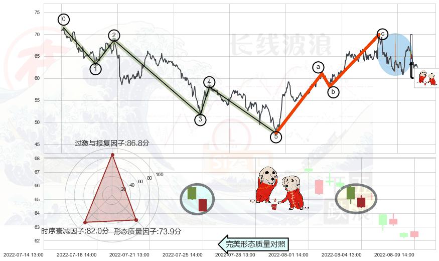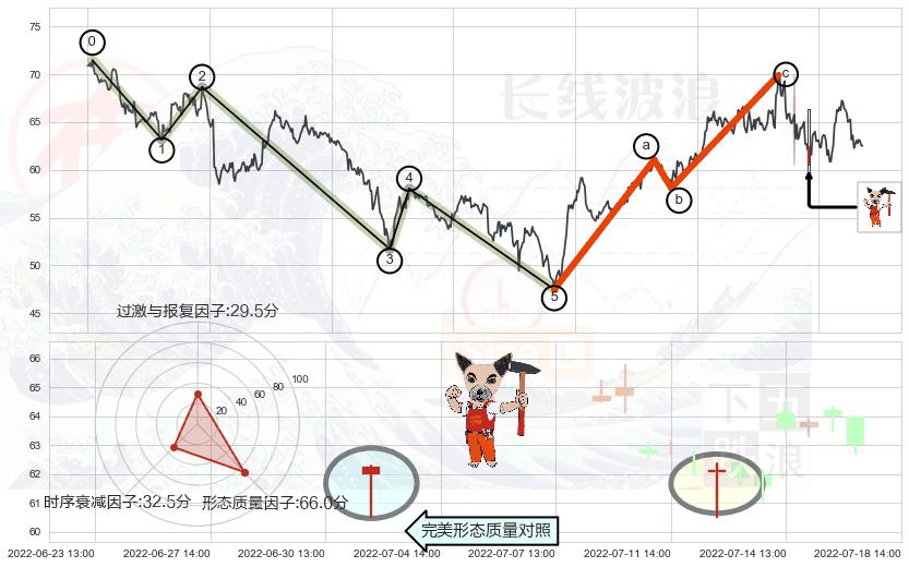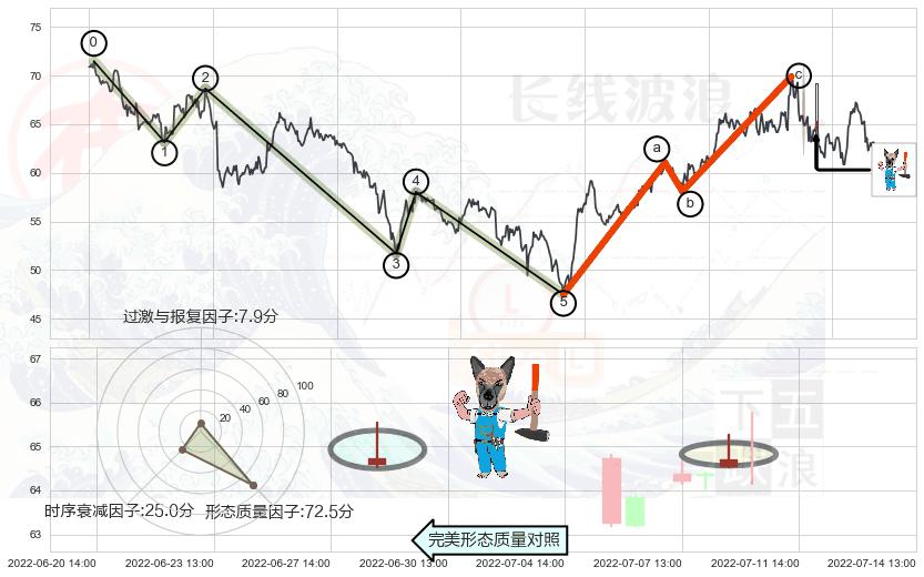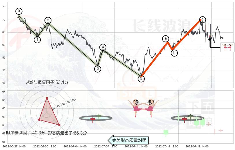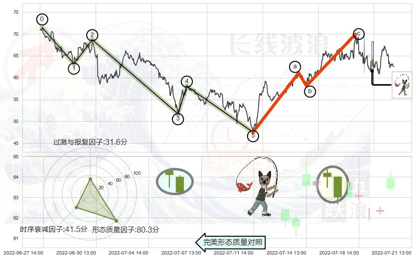 ➣ 调整浪已超过预测的c点位置,后续大趋势循环浪继续下跌概率54.06%,谨慎做多