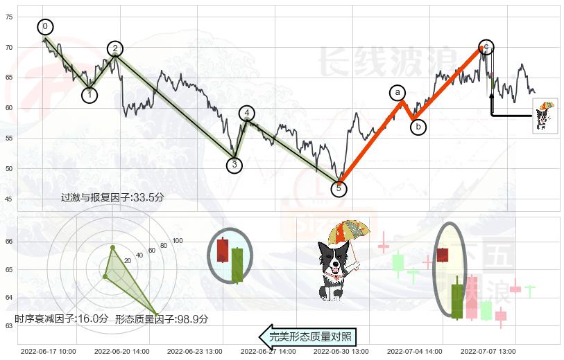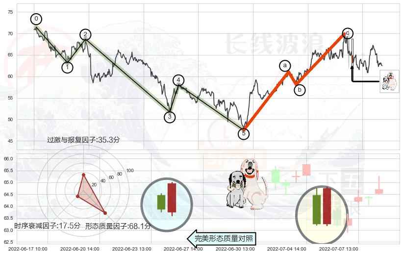 ➣ 看跌(高位倒锤头)流星线 + 波浪理论c点反弹终止反转下跌信号叠加后【反向回撤率】中等,【看空】信号叠加【存续影响中等】