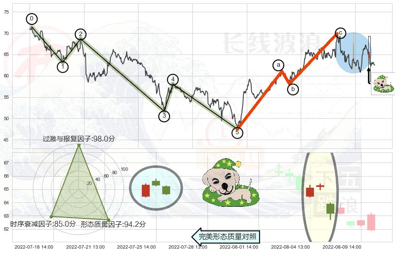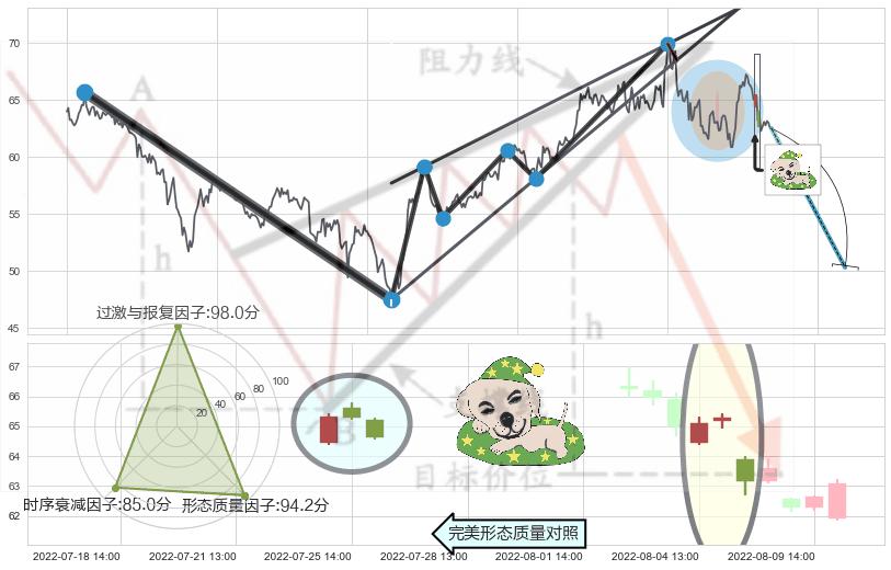 ➢ 🕰 价格走势在2022-08-10 14:00:00至2022-08-12 14:00:00期间形成高档五阴线,残存影响值:-6.20