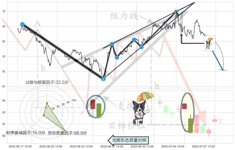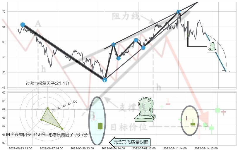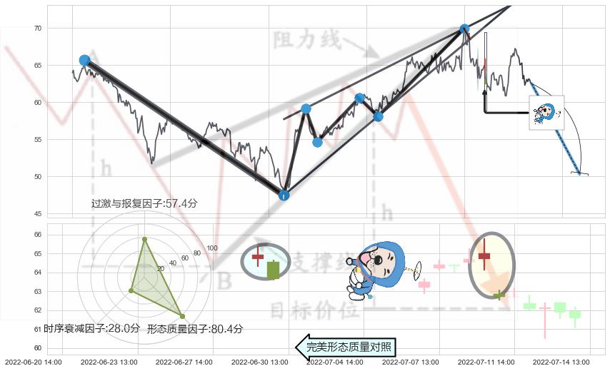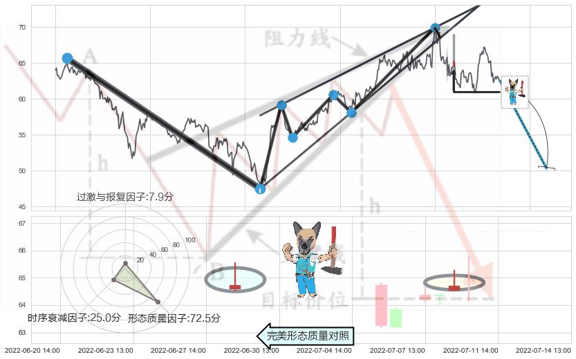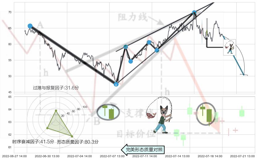 ➢ 🕰 价格走势在2022-07-08 14:00:00至2022-07-11 13:00:00期间形成下跌螺旋桨,残存影响值:-4.09