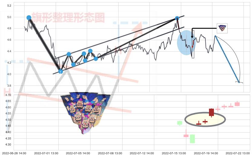➢ 🕰 价格走势在2022-07-19 14:00:00至2022-07-20 13:00:00期间形成顶部尽头线(下山虎),残存影响值:-3.48