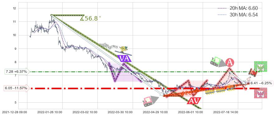 ♘ 阻力价格位7.28,可信任强度47.19%,距离最后交易2022-08-12 14:00形成的收盘价格6.84相差 +6.37%
