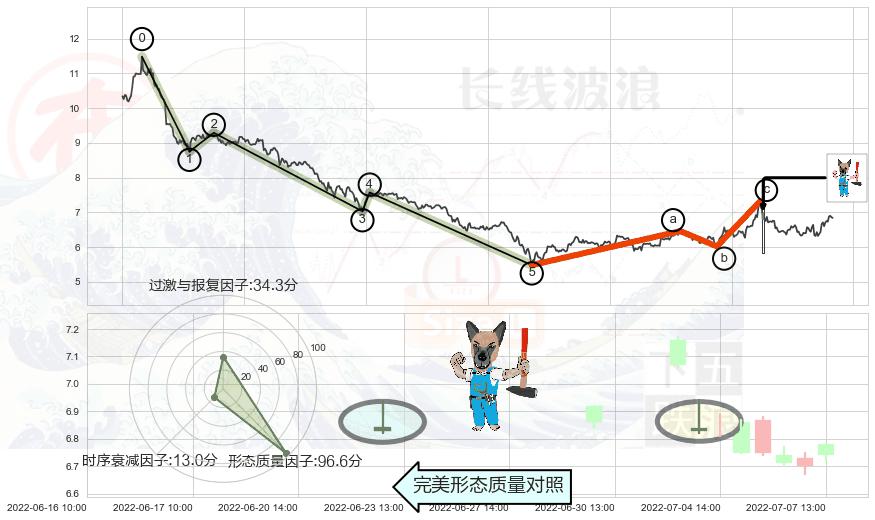 从2022-06-30 14:00至2022-08-02 14:00,共包含47个小时,阶段股价下跌-13.95%,阶段股价变动位移路程比: 1 : 3