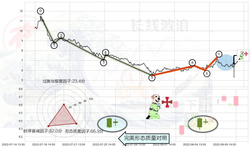 从2022-08-02 14:00至2022-08-12 14:00,共包含15个小时,阶段股价上涨8.07%,阶段股价变动位移路程比: 1 : 2