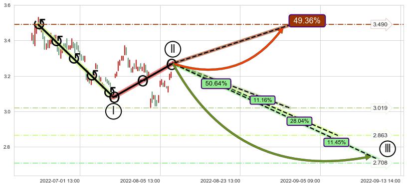 ➢ 循环浪继续向下【最低】位置(09-13:14, 2.708),匹配聚类样本比例22.61%, 可能性概率11.45%
