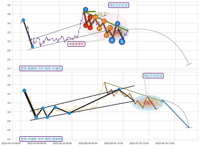 从2022-06-08 14:00至2022-08-11 14:00,共包含112个小时,阶段股价下跌-11.95%,阶段股价变动位移路程比: 1 : 8,下跌趋势角度: 32.2