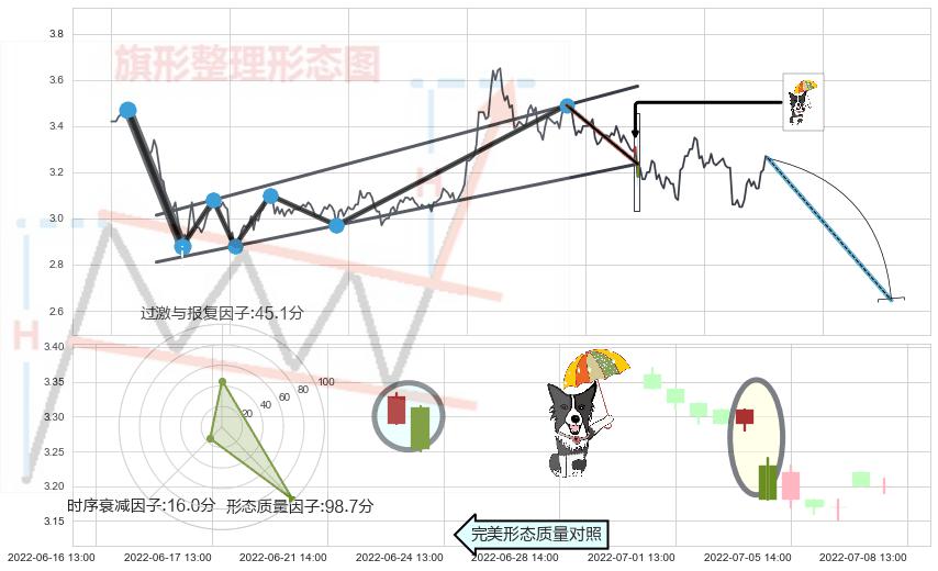 ➢ 下跌螺旋桨 🔜 升旗形支撑破位转换阻力下跌 综合量化分数:45.03 【偏空】
