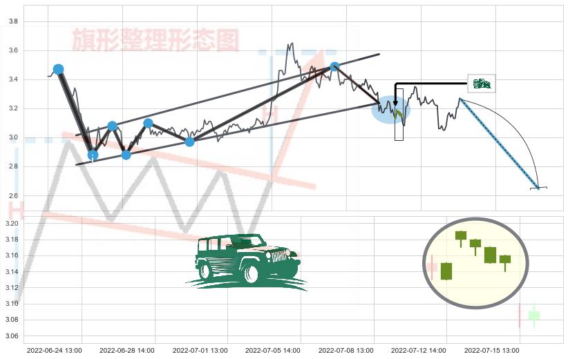 ➣ 升旗形:关键支撑位被击穿 → 猜想形成趋势持续下跌 → 风险信号 → 大趋势均值回复