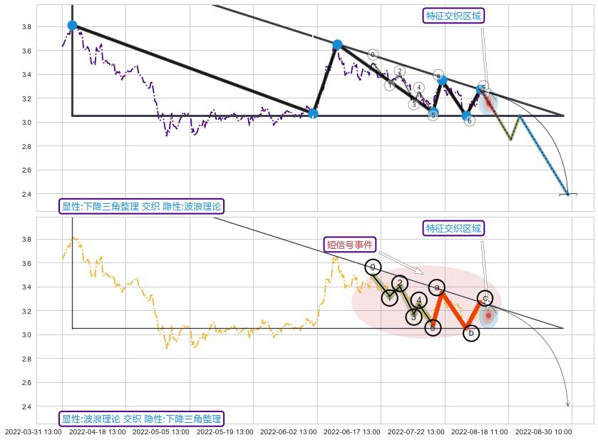 ➢ 波浪理论属【短级别信号事件】下降三角整理属【长级别信号事件】长短周期组合信号事件, 短长事件长度比26.40%