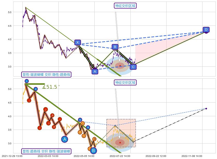 ➣ D点拟合预测价格4.28,距离最后交易收盘价格3.260相差 +31.28%