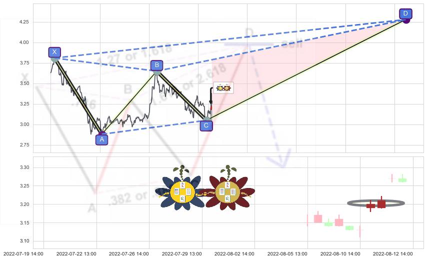 ➢ 谐波蝴蝶:猜想c点下沉接近b点后强支撑来临拉升上涨(均值回复)