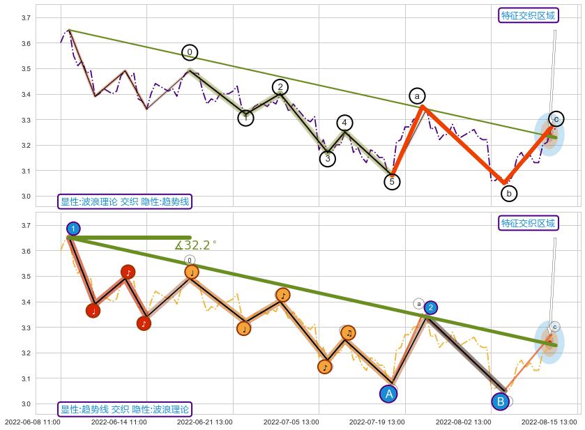 ➢ 循环浪继续向下【最高】位置(08-30:14, 3.019),匹配聚类样本比例22.03%, 可能性概率11.16%