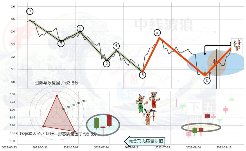 从2022-07-15 14:00至2022-08-12 14:00,共包含39个小时,阶段股价上涨6.08%,阶段股价变动位移路程比: 1 : 5